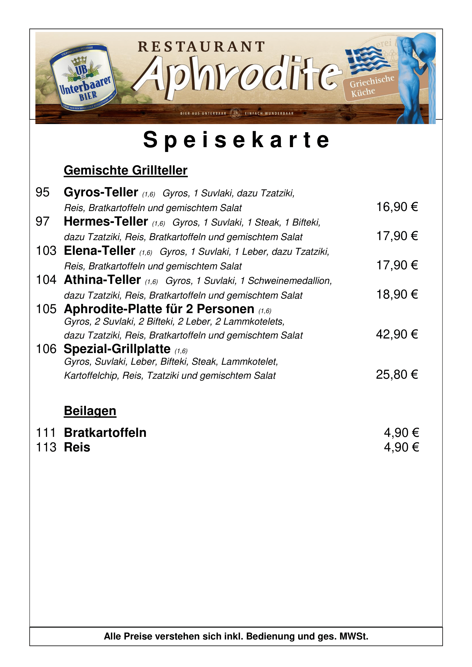 Genießen Sie im Restaurant Aphrodite authentische griechische Küche und herzliche Gastfreundschaft – der ideale Ort, um sich verwöhnen zu lassen und den Alltag zu genießen.